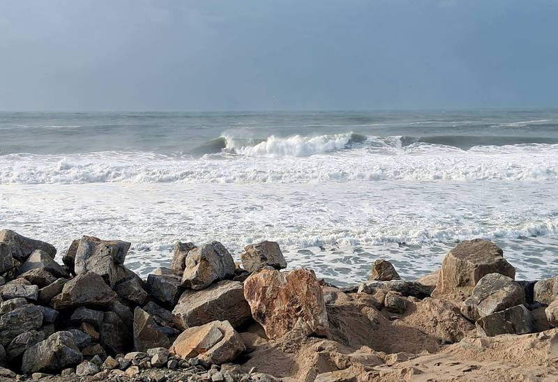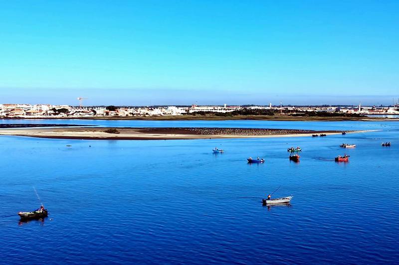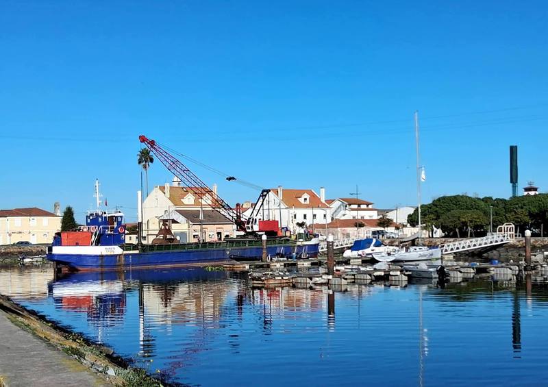 Ein toller Sonnenaufgang begrüßt uns! Der Himmel ist strahlend blau, da wollen wir uns den Strand rund um die Bucht von Gafanha da Nazaré ansehen. Wir beginnen mit einem Hafengelände und dann geht es über eine Brücke zu der Landzunge, die um den „Ria de Aveiro“, einer riesigen Bucht, herumführt.